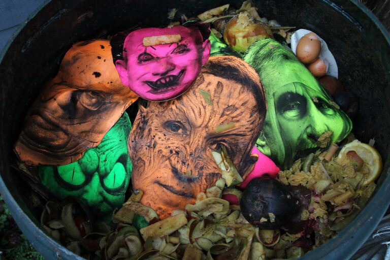Eat The Rich, 2020 silently plays out like an allegory which the demonised faces of the global elite are decomposed and recycled back into the earth, offering our soil the nutrients to sow the seeds for a healthier future.
