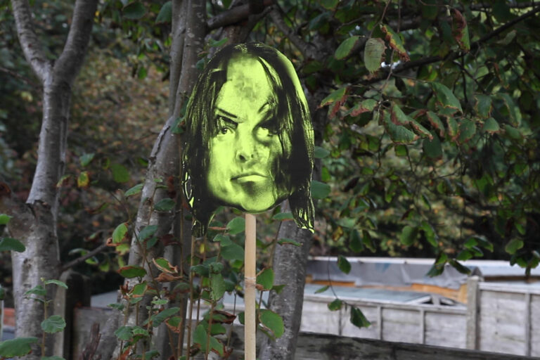 Shot during the first UK lockdown, Eat The Rich, 2020 follows a female protagonist casually tending to ther garden. Featured in the background are the warped faces of nine of the richest billionaires living today such as Elon Musk, Mark Zuckerberg and Bill Gates, whose faces have been digitally combined with horror movie characters such as IT, Beetlejuice and Freddy Kruger.